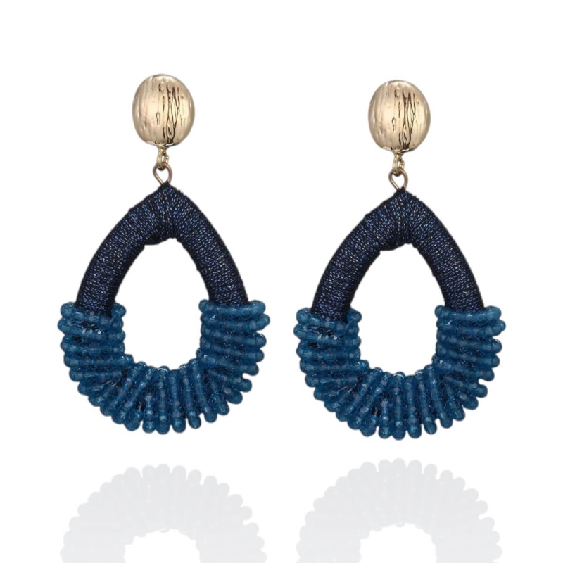 Deze oorbellen hebben een opvallend druppelvormig ontwerp dat zorgvuldig is omwikkeldmet glanzend draad. Aan de onderzijde zijn kleine transparante kralen die zorgen voor extra