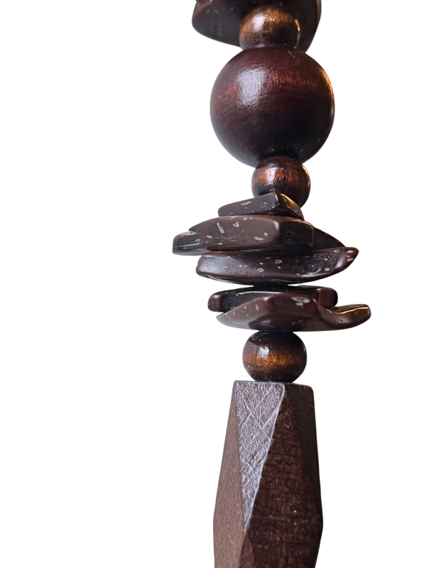 Een warme, natuurlijke ketting met karaktervolle vormen en diepe bruintinten.
