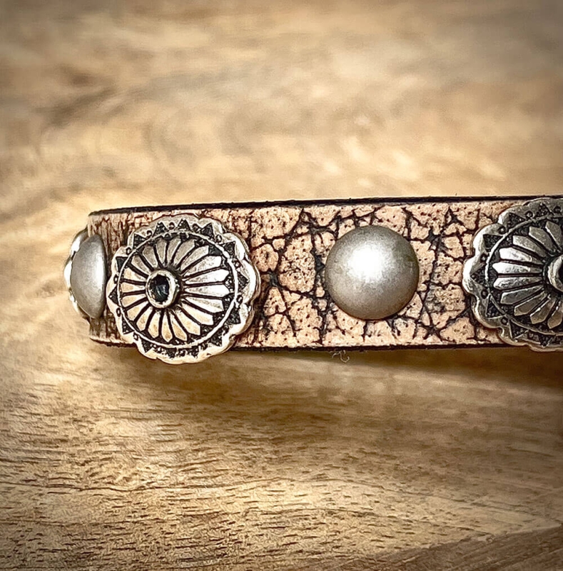 Een leren armband met zilveren details, tijdloos en gedurfd.Specificaties
