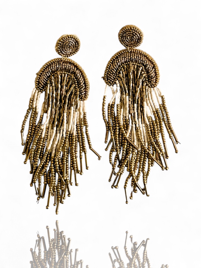 Laat jezelf stralen met deze opvallende kralenoorbellen vol beweging en karakter.